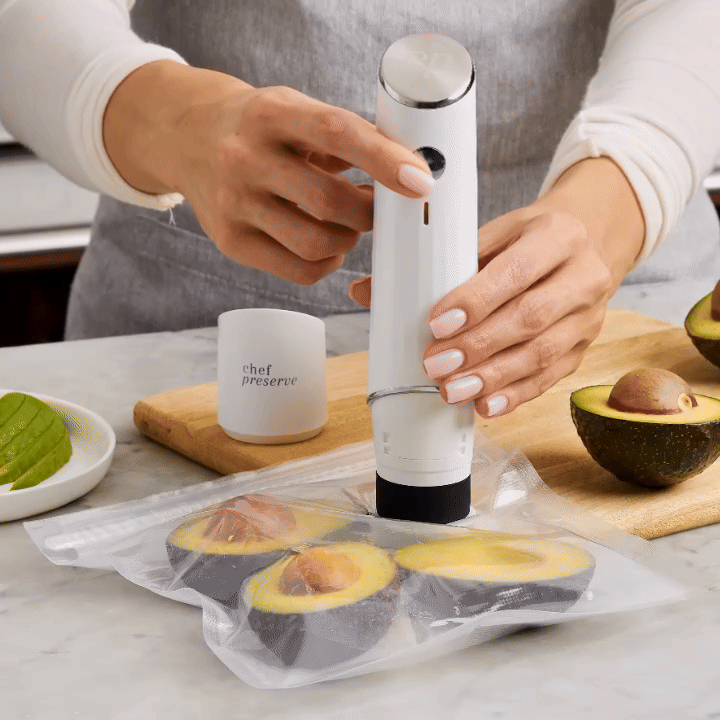 Es hält dicht. Unser DualSeal Ventil-System verhindert das langsame Eindringen von Luft (anders als Ziploc-Beutel). Das Ergebnis: Kein Gefrierbrand, kein Geschmacksverlust.